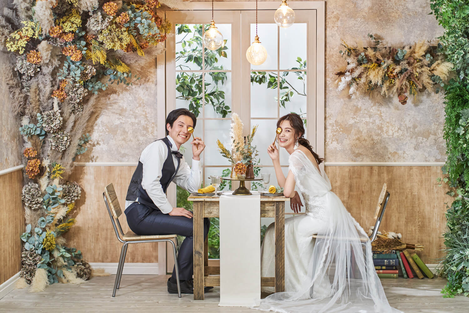 撮影場所(スタジオ・ロケーション)、衣装、ポーズ、小道具、シチュエーションなどを考えて、一味違う二人らしさを撮影で表現するのも、楽しい魅力となるポイントの1つです。