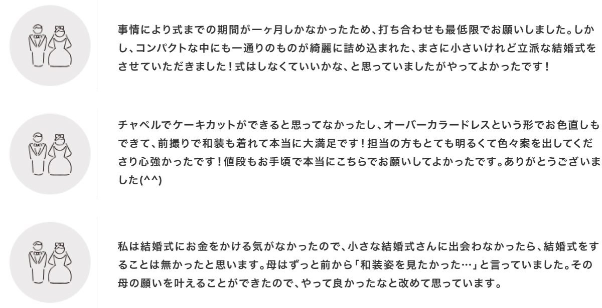- 本当は結婚式を挙げたいけど、費用面で断念していた。