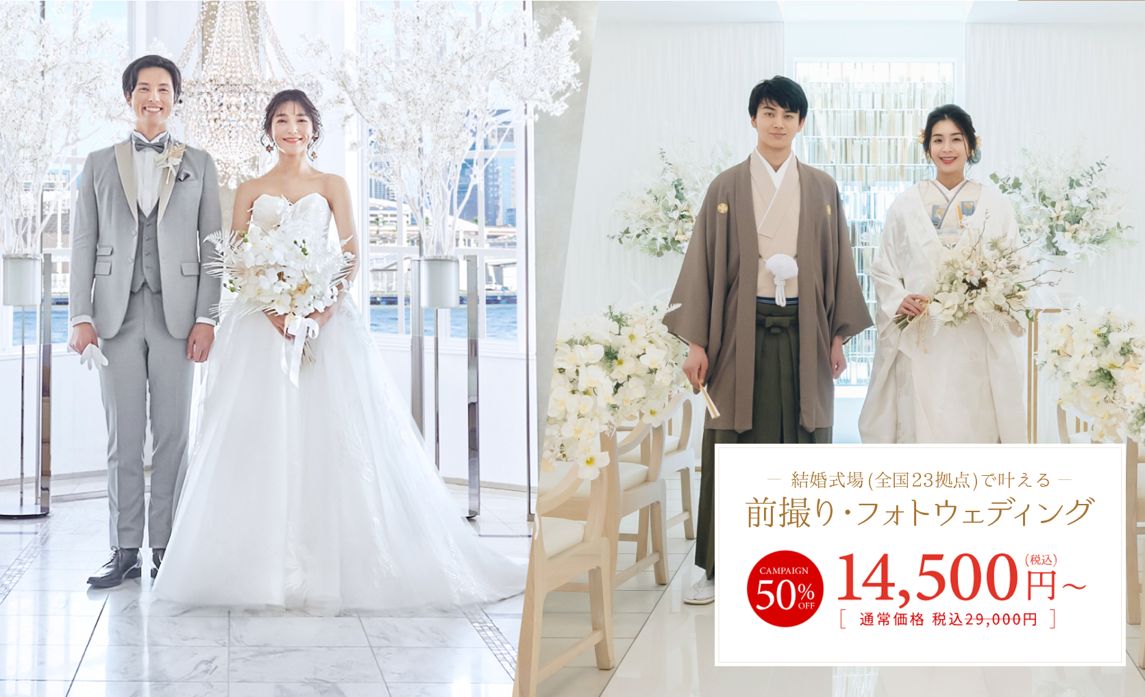 フォトウェディングプランとの価格差は5万円程度なので、「本当は結婚式を挙げたかった」と考えている方は、検討してみてはいかがでしょうか?