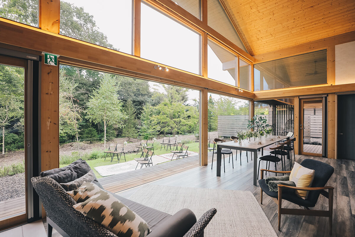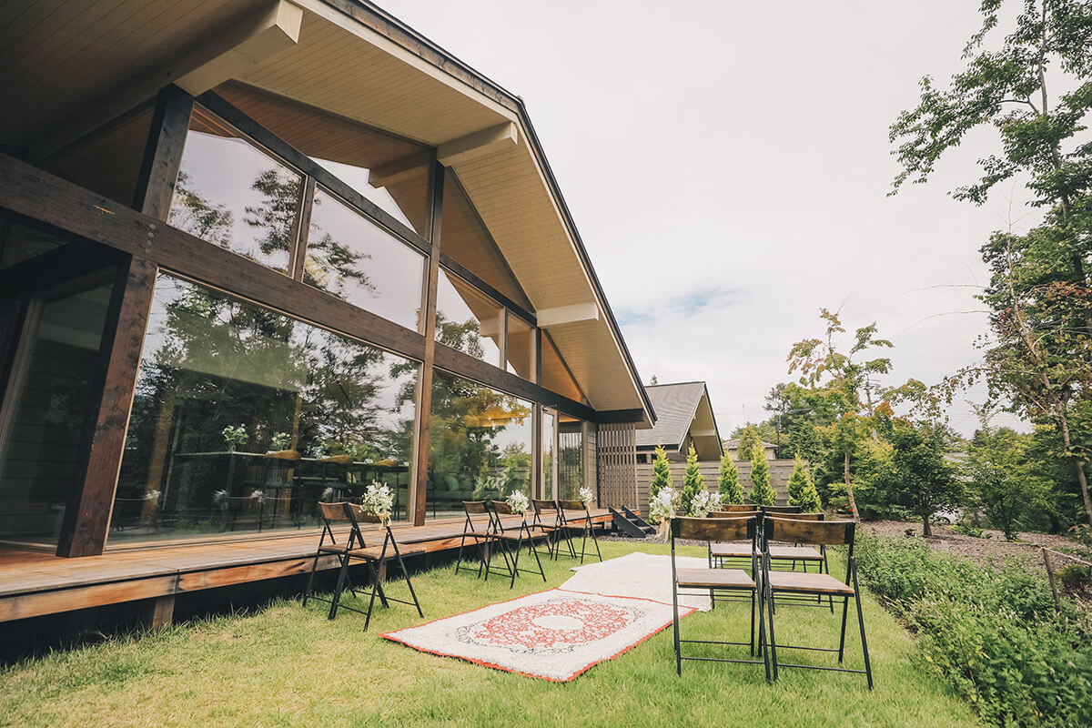 雄大な自然が残された軽井沢町にある「Villa Metsa KARUIZAWA」は、スカンジナビアンデザインの洗練されたログハウス。大切な家族や仲間と、まるで自分たちの別荘に来たかのような時間をお過ごしいただけます。そんな豊かな森、澄んだ空気の中執り行うのは、ヴィラを3棟貸し切って挙げる唯一無二の結婚式!3棟ある内の1棟で心地よい風と光輝く太陽に包まれたガーデンウェディングを、残る2棟はご宿泊部屋としてご家族団欒の時をお過ごしください。