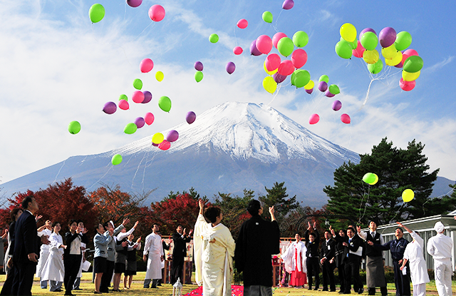 雄大な富士山と優美な山中湖を望める挙式会場がなんといっても魅力の一つ。 おふたりの想いを表現できるセッティングもでき、オリジナルのセレモニーが実現。 1日1組様限定ですので、ご家族やゲストとゆったりとお過ごしいただけます。 お打合せは電話やメールでも可能ですので、全国どこにお住まいでも安心して当日をお迎えいただけます。