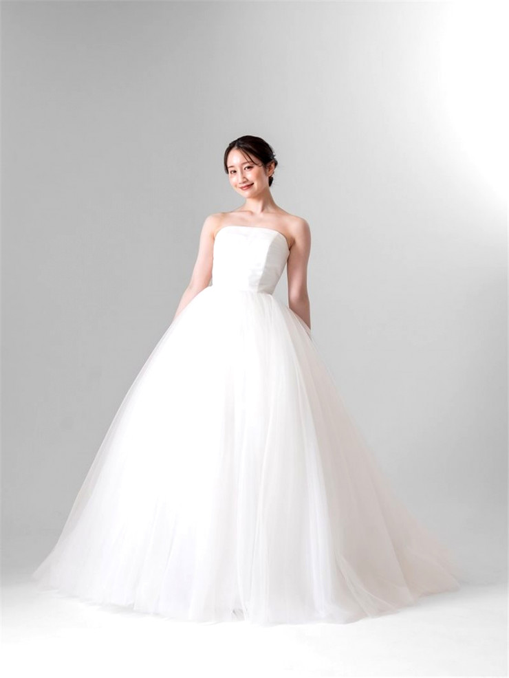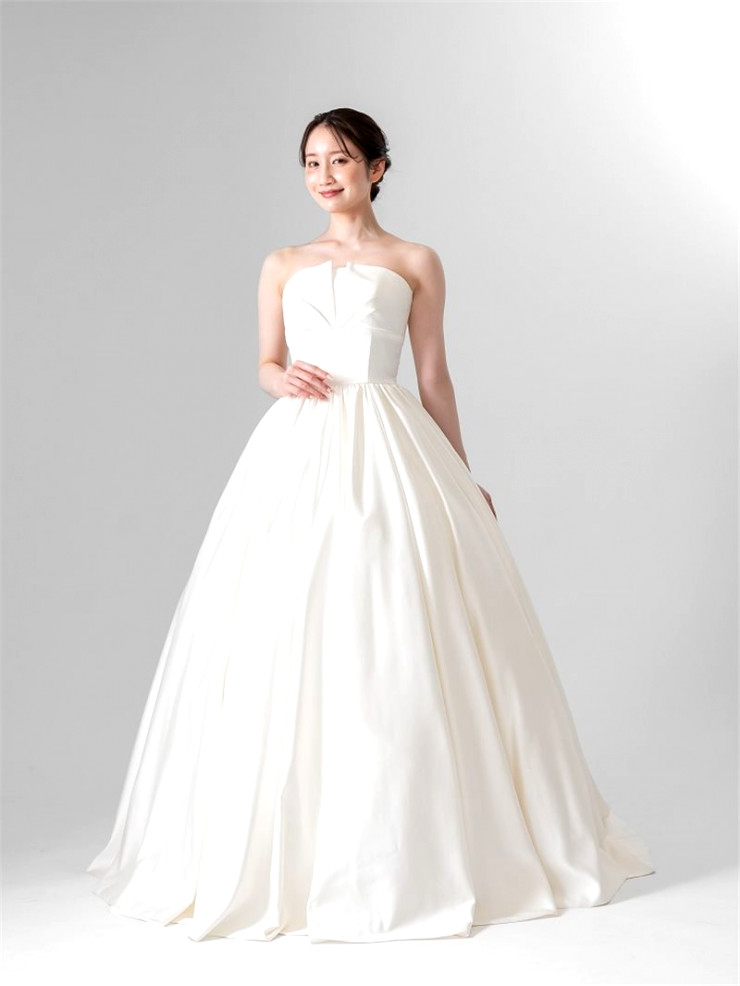 パニエの入れ方次第で、気品あるAラインにも、華やかなプリンセスラインにも変化可能。