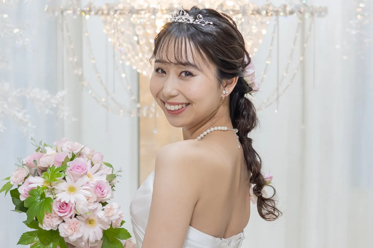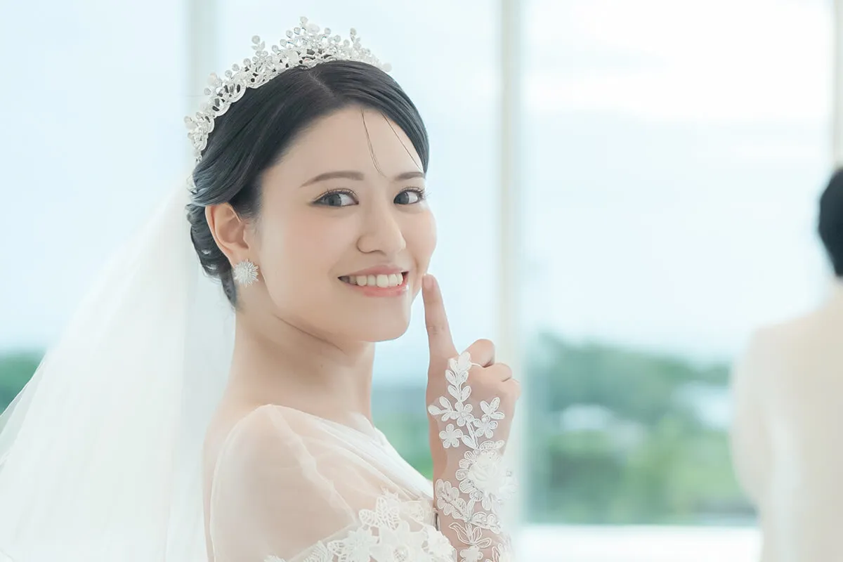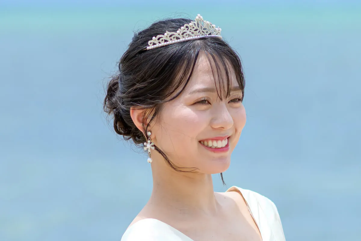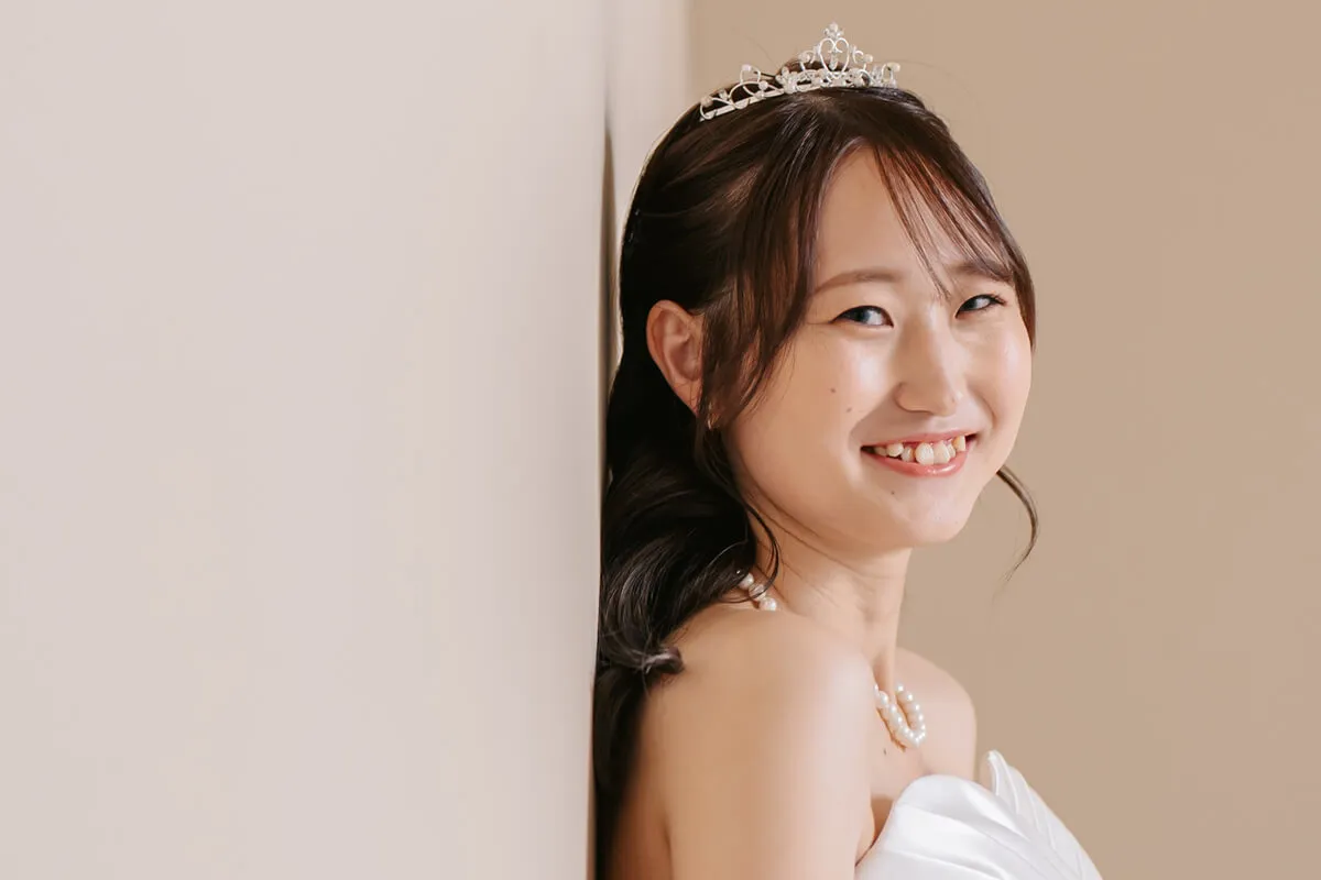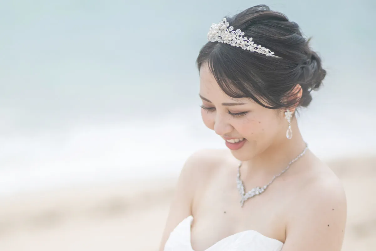 煌めくティアラが、花嫁の特別な一日を気品あふれる装いへと導きます。繊細なデザインと優美な輝きが、上品で洗練された印象を演出。王妃のようなエレガンスを纏い、最高の瞬間を彩ります。