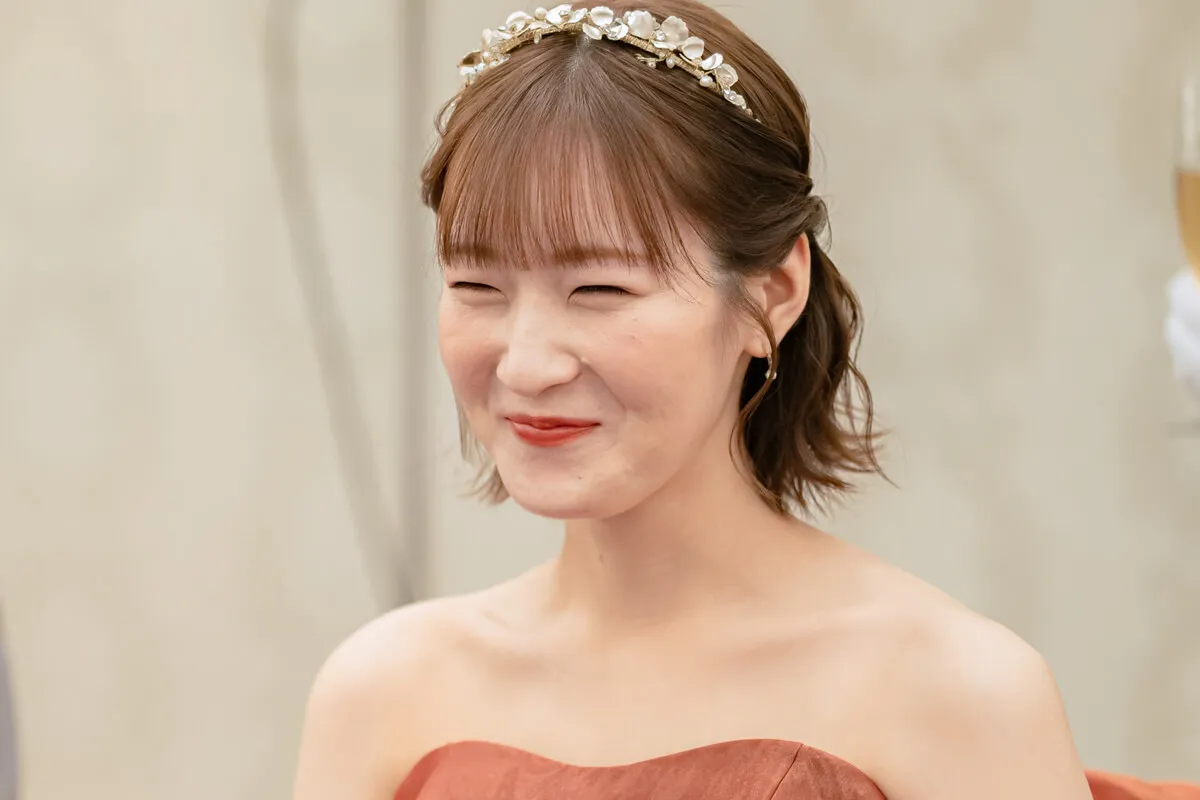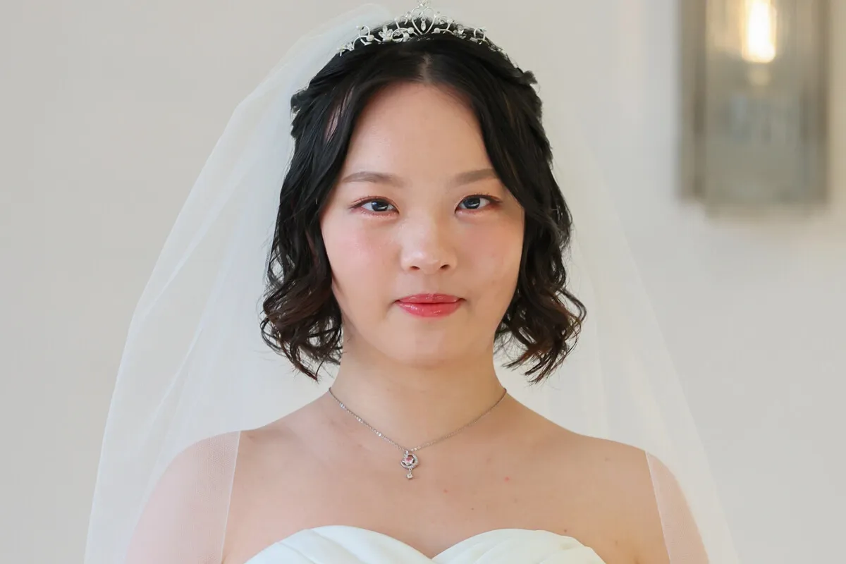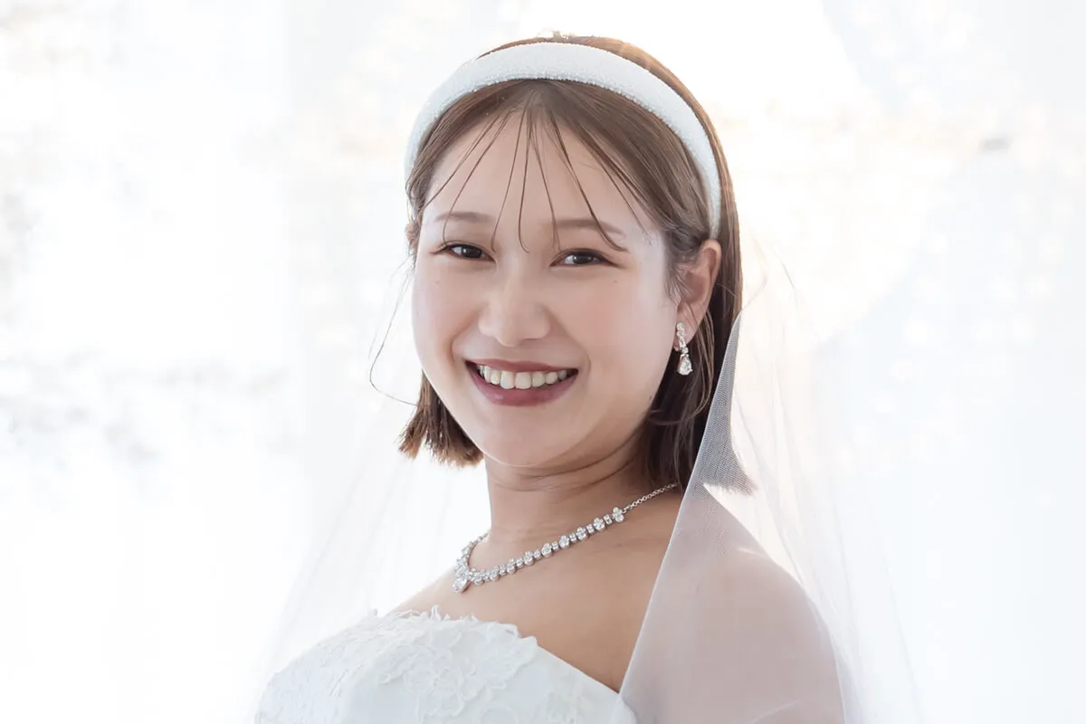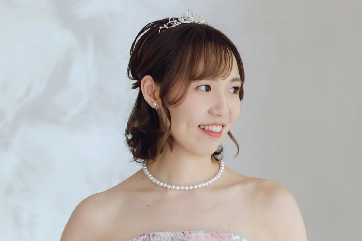 コンパクトなシルエットで顔立ちを美しく際立たせ、イヤリングやティアラなどのアクセサリーとの相性も◎。トレンド感もありながら、可憐で上品なスタイルを楽しめます。