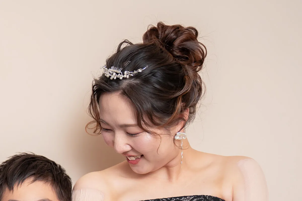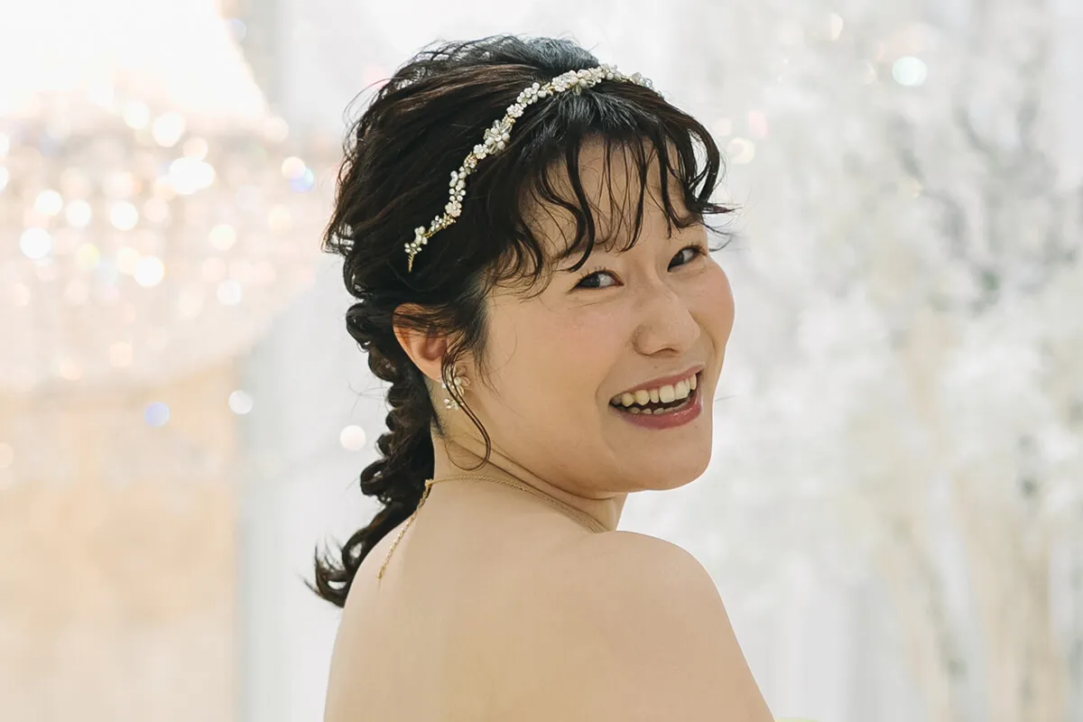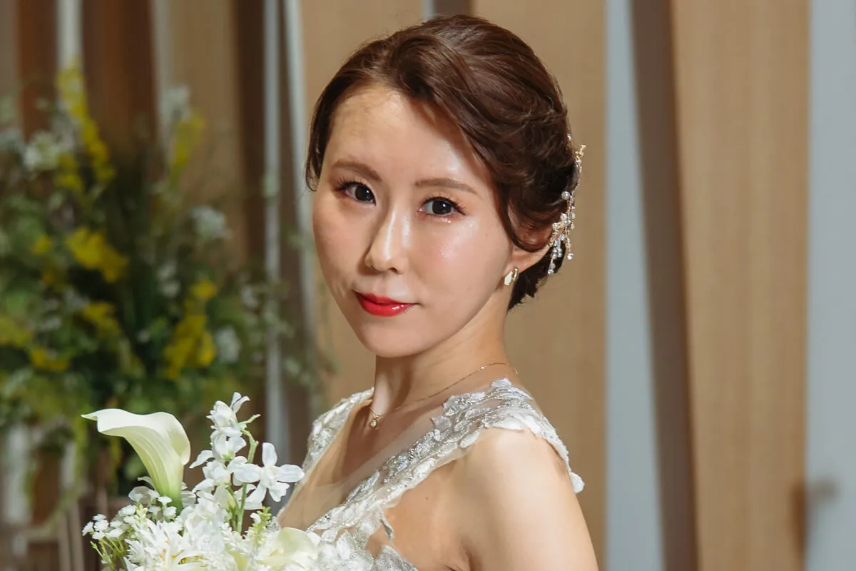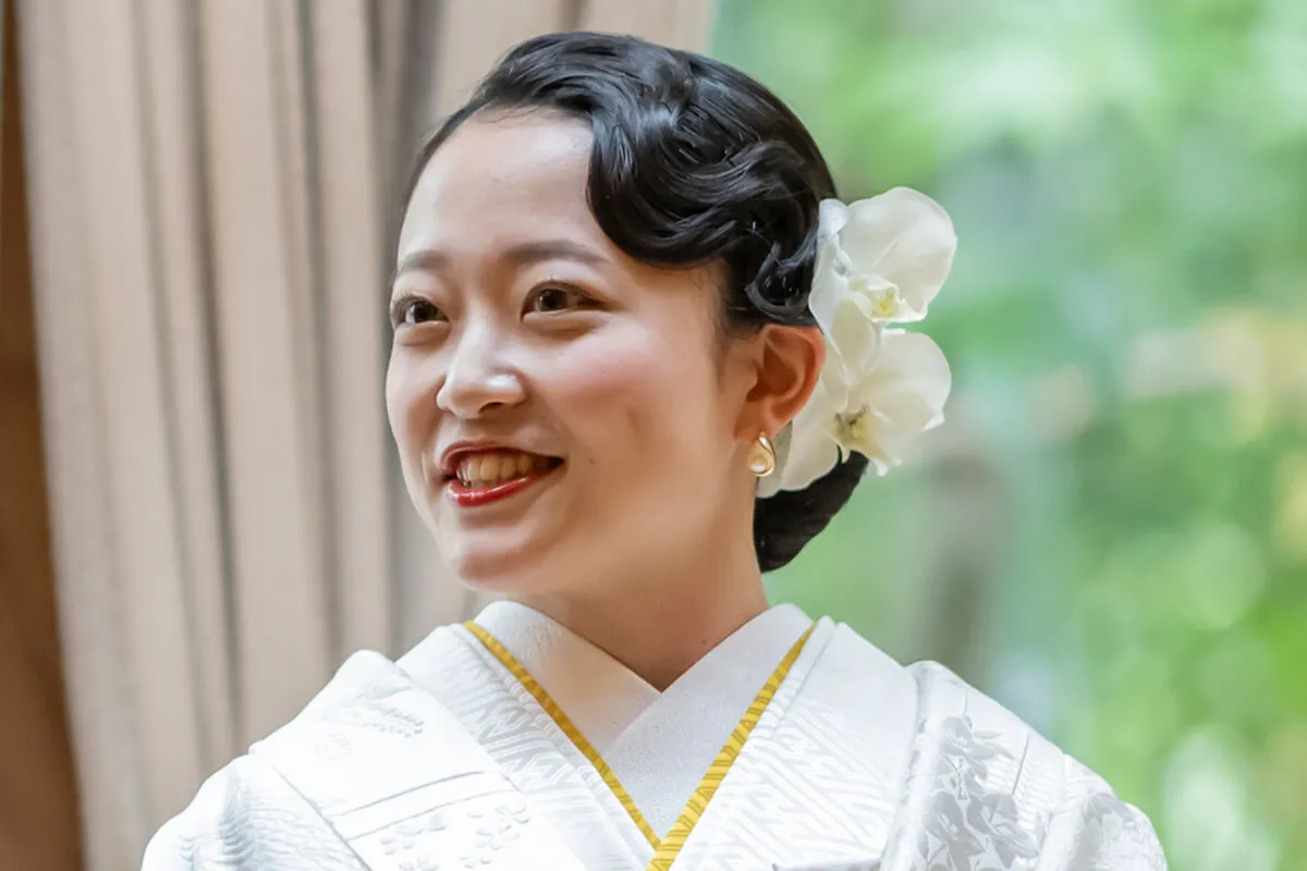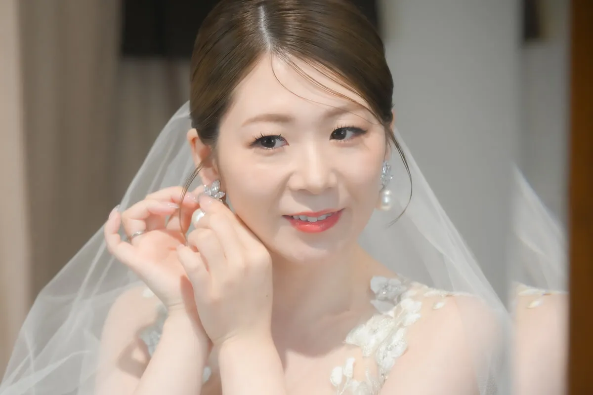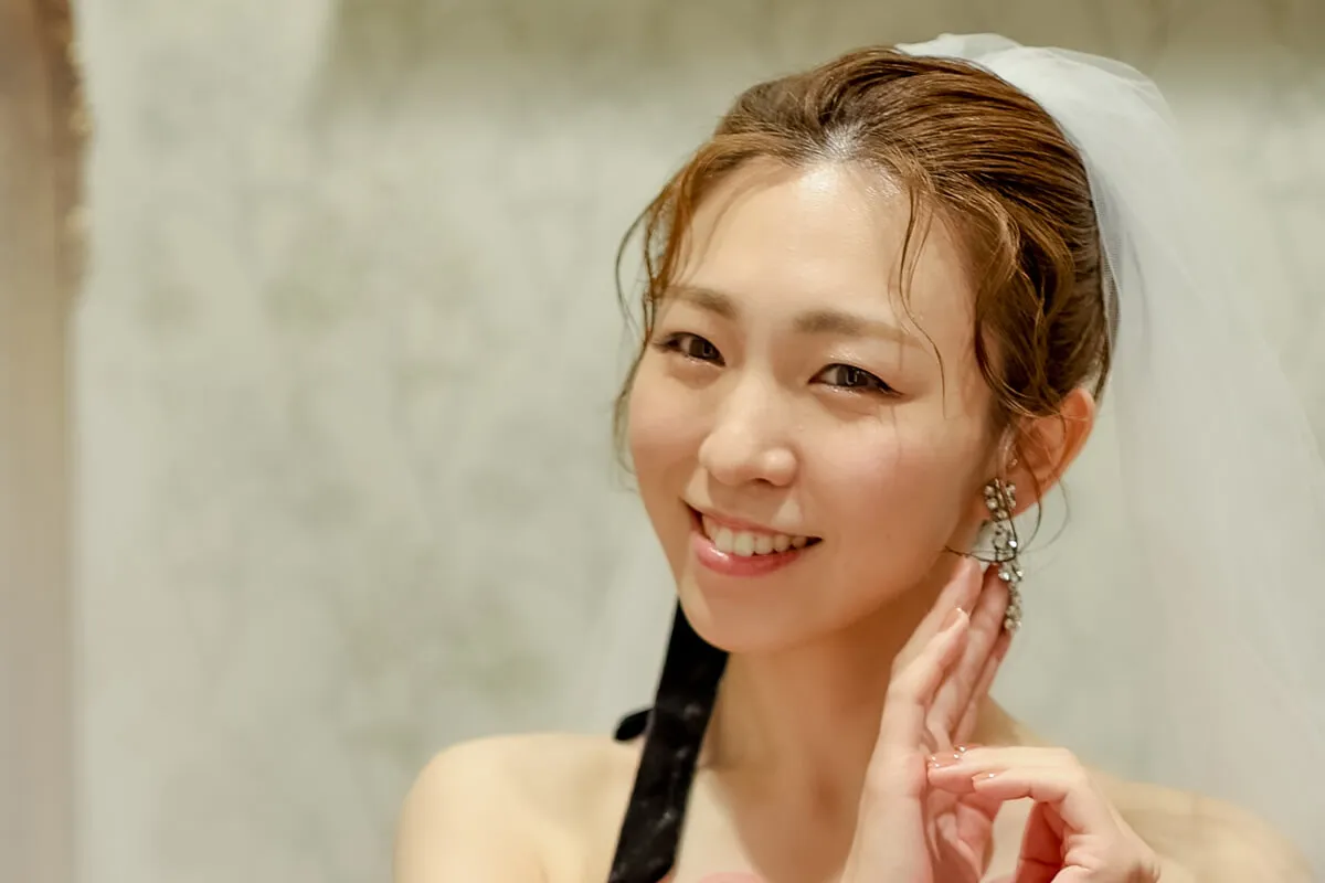 花嫁の印象を大きく左右する前髪のスタイル次第で、同じヘアアレンジでも雰囲気がガラリと変わります。ふんわり流すだけでやわらかい印象に、重めに下ろせばクラシカルな雰囲気に。