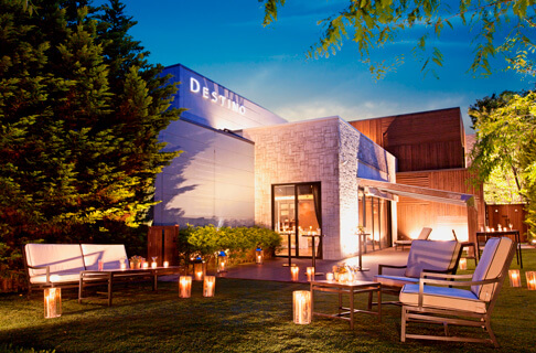 ディスティーノブルックリンニューヨークは、1946年創業の割烹旅館のルーツを持ち、その“おもてなし”と“食”の文化を受け継いでいます。私たちは、日本人の感覚に合ったウェディングスタイルを生み出すために、N.Y.スタイルを取り入れたウェディングを精査し、独自の魅力を融合させました。この特別な場所で、誰もが笑顔になるウェディングを目指しています。N.Y.ブルックリンの街中にあるような、ハイセンスでありながらどこか寛げる雰囲気を持った一軒家。まるで自宅で行うパーティーのように、お二人も訪れるゲストの皆さまもリラックスしてお過ごしいただけます。他の何にも邪魔されることなく、心ゆくまでプライベートな時間をお楽しみください。『THEATRE(テアトル)』と名付けられたチャペルは、「包み込む」という意味を持ち、母の胎内をイメージして創られました。誰もが体験したことのある優しさに包まれた、どこか懐かしいあの空間で、大切な方々に見守られながら行う挙式は、この日だけの特別な感動を与えてくれます。パーティー会場は昼と夜で全く異なる顔を持ちます。昼間は窓からの陽光と眺める緑が眩しい爽やかな空間に、夜は無数のキャンドルが煌めきシックで大人の雰囲気に包まれます。さらに緑あふれるガーデンも魅力的です。この特別な場所で、お二人とゲストの皆様にとって忘れられない一日を演出いたします。