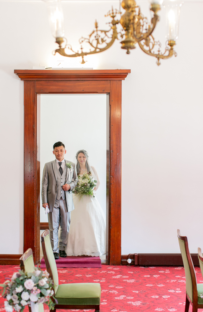 豊平館は、北海道開拓の礎を築いた開拓使が、開拓使直営の洋風ホテルとして1880年(明治13年)11月に建築し、現存する旧木造ホテルとしては我が国最古の建物であるとともに明治、大正、昭和と3代にわたり天皇家が訪れた由緒ある建物です。1964年(昭和39年)には国の重要文化財に指定されました。そんなクラシカルな雰囲気の中でまるで映画のようなワンシーンを。