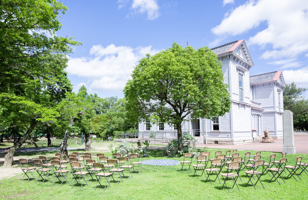 JR岡山駅から車で5分、岡山県総合グラウンドの一角に建つ「Tiara THE CLASSIC CLUB」。かつて「第17師団岡山偕行社」として旧陸軍の将校集会所だった洋館は、100余年を経た現在では結婚式場としてはもちろん、市民の憩いの場として活躍し続けています。風と光を感じながらのガーデンセレモニーは、開放的な空間で誰もが和やかな表情に。おふたりはもちろん、ゲストの記憶にも刻まれる印象的なセレモニーで一生の誓いをたてていただけます。一日一組限定の貸切ウエディングだからこそ、パーティはゲストを自宅に招いたようにゆったりとお過ごしいただけ、おふたりと大切なゲストとの距離感もぐっと縮めます。歴史を感じるクラシカルでモダンな空間を、プライベート感覚で贅沢に使いこなしたおもてなしを。