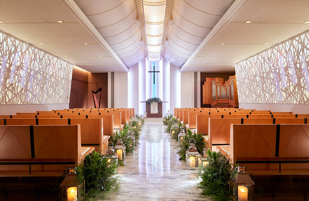 中四国地方の玄関口岡山駅直結の好アクセス、評判の高い料理、充実設備…と、魅力いっぱいのグランヴィアウエディング。やわらかな光と白い大理石のヴァージンロード、あたたかい温もりの光に包まれた幻想的なチャペル。パイプオルガンの生演奏が響く中、大理石のヴァージンロードを歩けば感動も最高潮に達します。少人数から盛大なパーティまで豊富な会場の中からふたりのスタイルで結婚式が叶います。