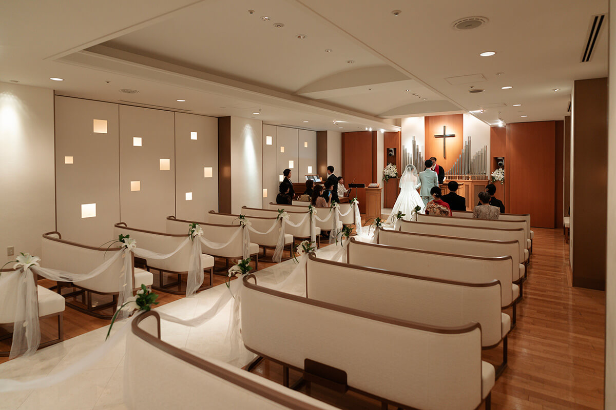 横浜駅から直結で、地上からでも地下からでも繋がっており、アクセス抜群。誓いを立てるおふたりの姿が美しく映り込む大理石のバージンロードや木のぬくもりにあふれた暖かみを感じられるチャペル、親族や友人たちに見守られながら記憶に残る誓いのシーンを演出いたします。