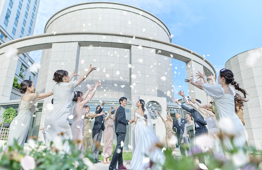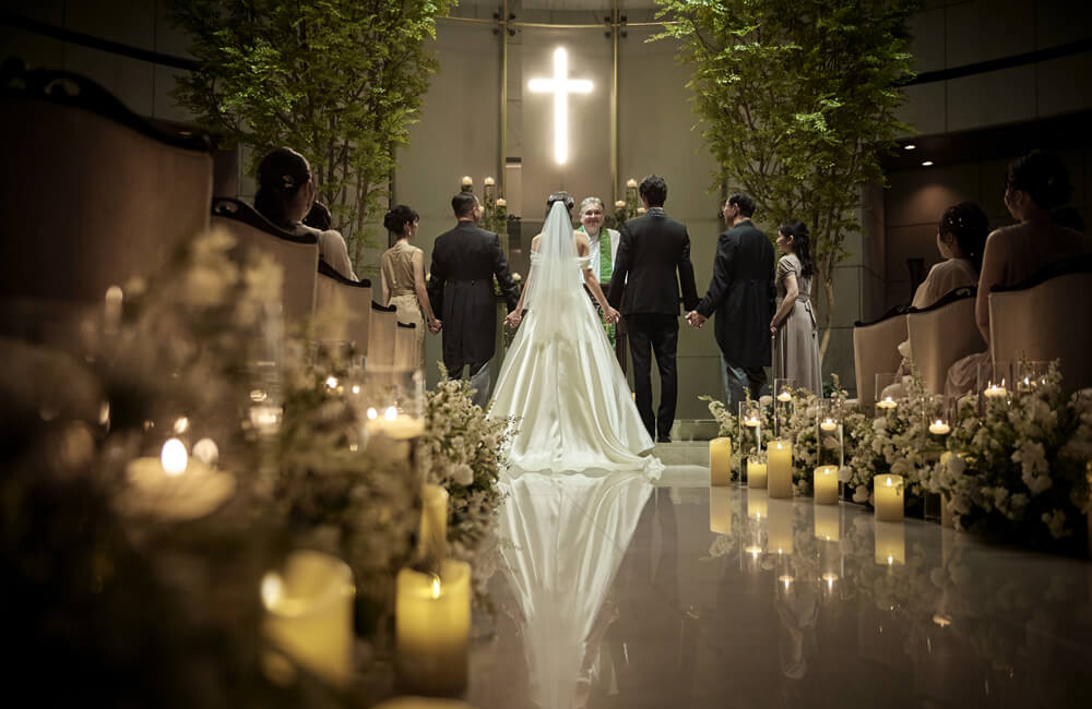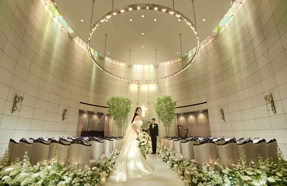 東京の名所が一望できる贅沢ロケーションでのウェディングが実現。「台場」駅直結の好アクセスで遠方のゲストにも安心なグランドニッコー東京台場は、東京ベイエリアでは唯一無二のヨーロピアンテイストホテルでの結婚式が叶う会場です。永遠を表すリングを形どった天井装飾が目を引く石造りの独立型チャペル「ルミエール」では、まるで天から降ってくるかのように聞こえる聖歌隊の歌声や拍手、そして天井からの七色の光が誓いの瞬間をより印象的なものにしてくれます。