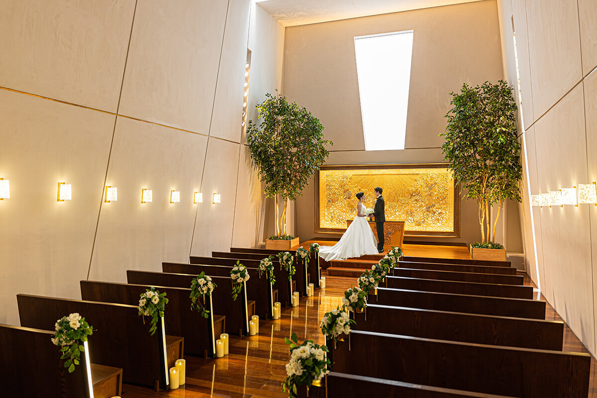 京都御所の西側、静かな街並みが古都の風情を感じさせてくれる京都の真ん中にある京都ブライトンホテル。そんな隠れ家的なスモールラグジュアリーホテルで厳かな結婚式が実現。純白の空間に映える14mの長いバージンロード、8名の聖歌隊と弦楽デュオが奏でる本格的なチャペル挙式。ガーデンではフラワーシャワーやバルーンリリースで和やかなひとときをお過ごしいただけます。「美食のホテル」としても定評があり、国内外のVIPをおもてなしするパーティーも数多く実施。