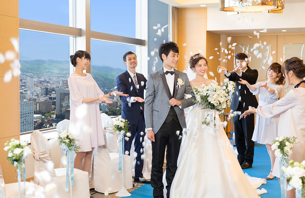 JRタワーホテル日航札幌は「さっぽろスカイリゾート」をテーマにJR札幌駅南口直結の利便性を備えながらもリゾートのくつろぎを感じさせてくれる札幌市のランドマークホテル。窓の外に広がるのは時間と共に様々な表情を見せてくれる、地上155mからの札幌市内を一望できるパノラマビュー。空と光、そして温かいおもてなしの心が織りなす、感動の舞台からはじまるおふたりのウェディングストーリー。 ※JRタワーホテル日航札幌は平日限定プランになります。