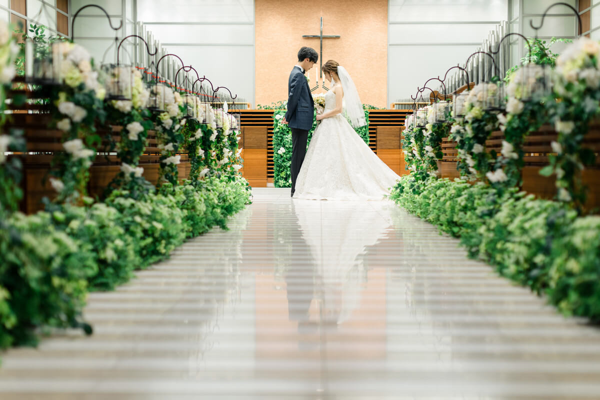 広島市内中心地にあり県内外への交通の拠点でもある「広島バスセンター」に直結した好立地で、市内はもちろん遠方からのゲストの方にも大変便利です。木のぬくもりとランプの灯りがあたたかな印象を与えるチャペルは、「天使たち」という意味を持つ「レ・シェルバン」。大理石のバージンロードに純白のウェディングドレスが映り込み、パイプオルガンとハープの生演奏、聖歌隊の歌声がチャペル内に響き渡る様子は、ゲストの心に感動のシーンとして刻まれます。披露宴は、小人数での会食から大規模パーティまで、スタイルに合わせて会場をお選びください。