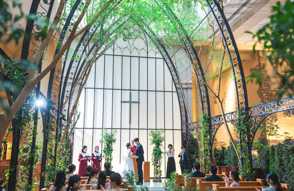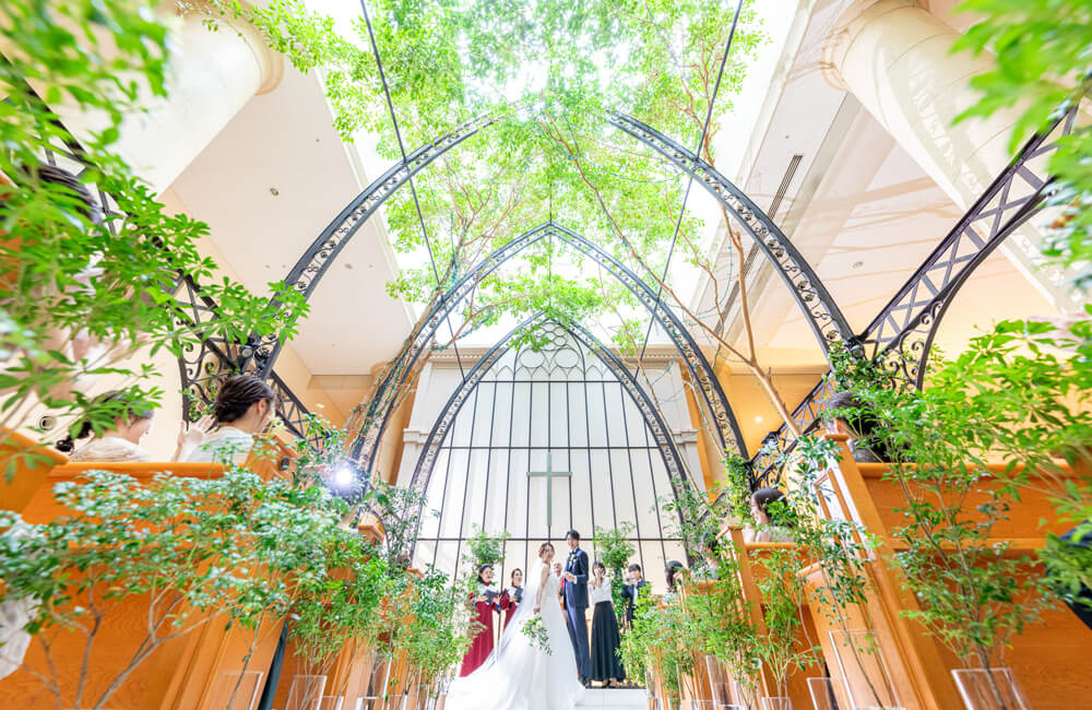 緑と光に包まれる“幸福の木ベンジャミン”のチャペル