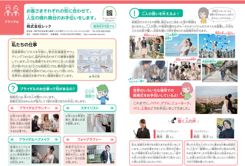 「小学生のためのお仕事ノート」(神戸市 2024年度版)にレックのブライダル事業が掲載されました。