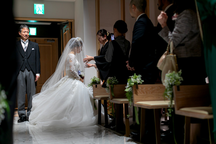 お母様からのベールダウンは親から娘への最後の花嫁支度。