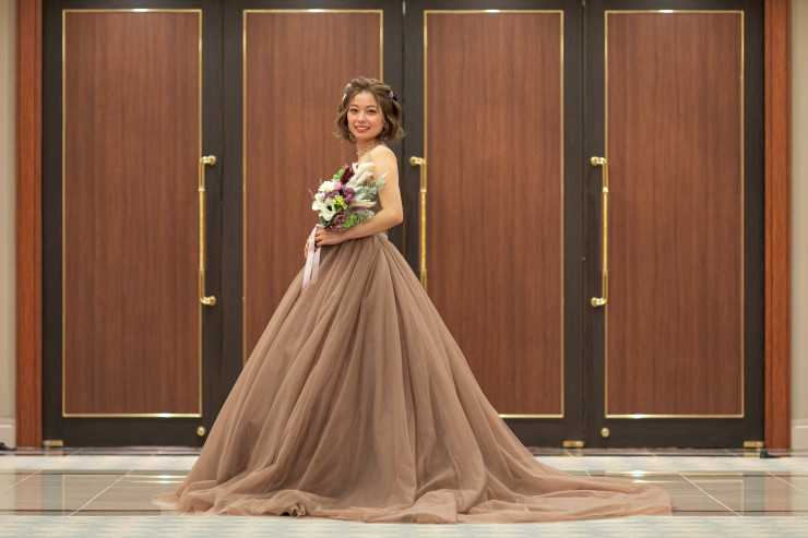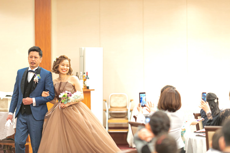 クラシカルな雰囲気にぴったりなカラードレスで入場です!!