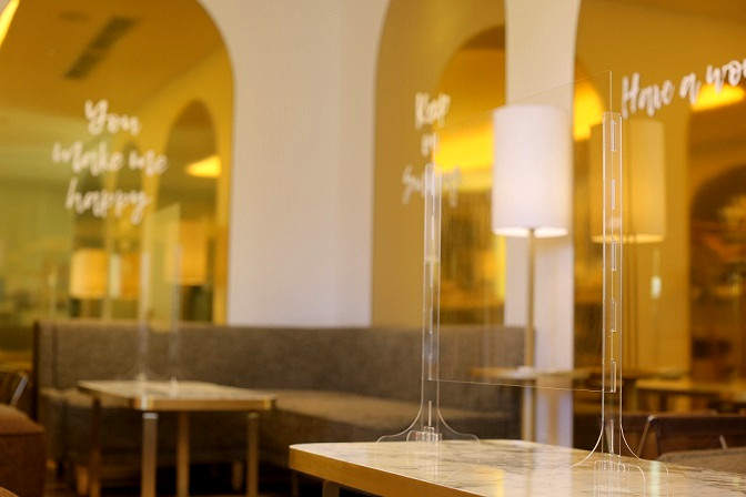 テーブルには透明のアクリルボードを置きました