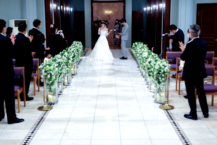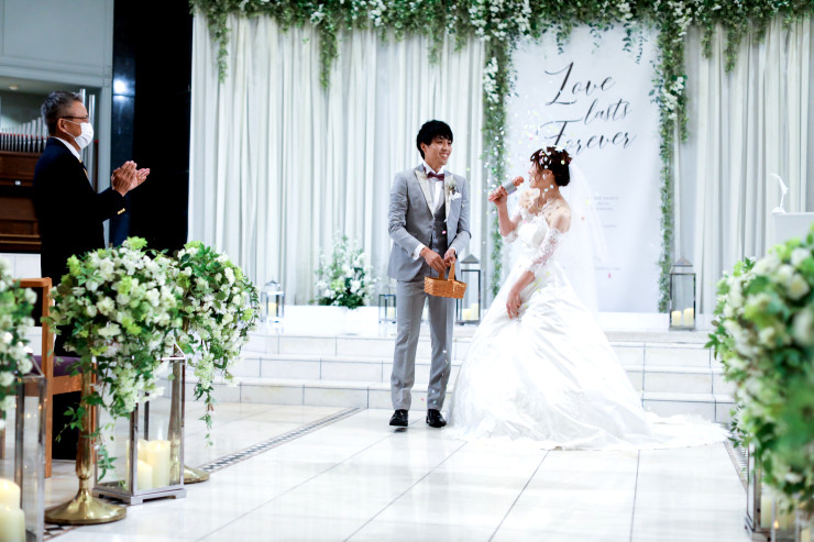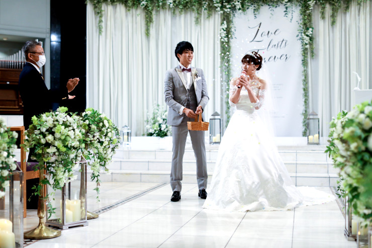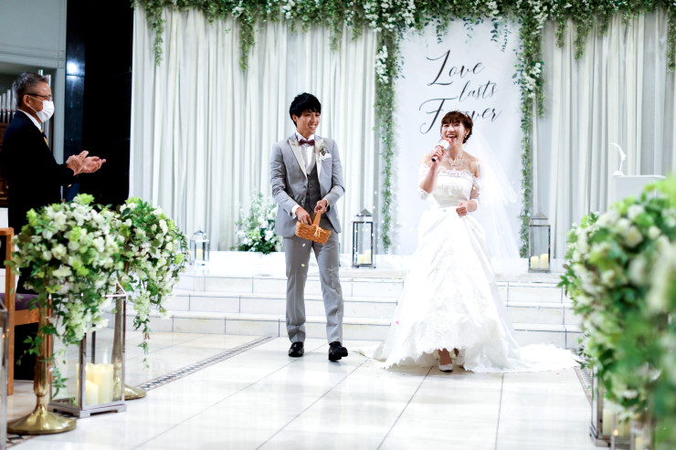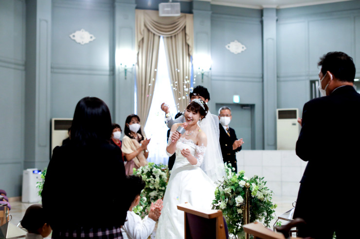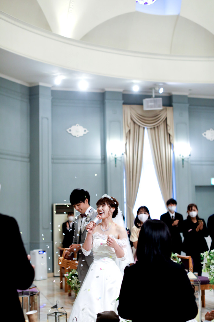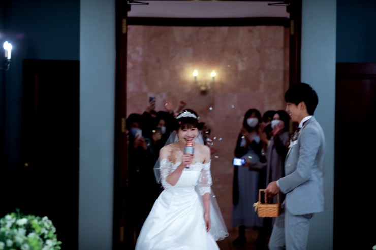 挙式のクライマックス、退場のシーンで、ご新婦様は歌を歌いながら退場です♪