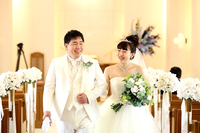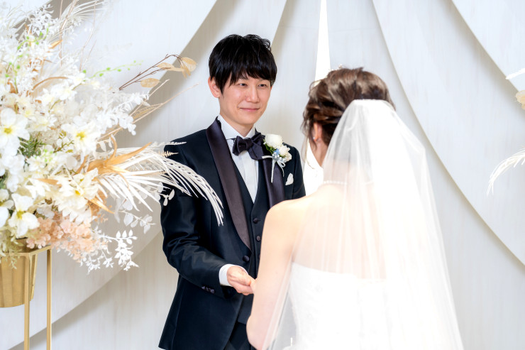 挙式中は厳かに、結んだあとはとっても笑顔で明るい写真撮影をしていました!