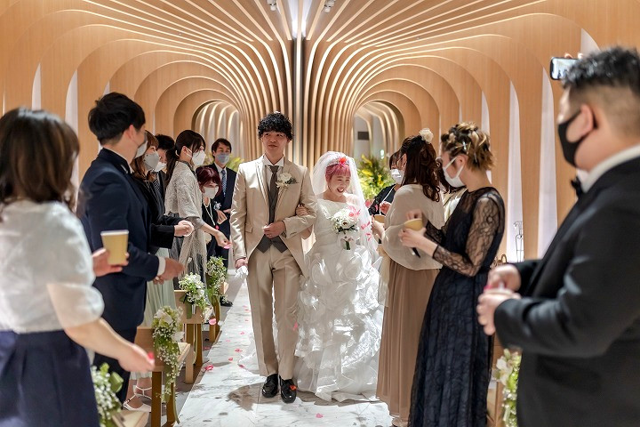 小さな結婚式ではソーシャルディスタンスの兼合いも含め20名様までの収容でご案内をさせて頂いております。