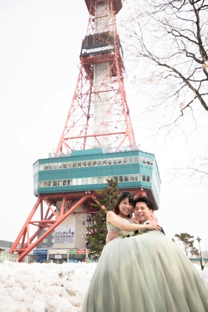テレビ塔をバックに、とってもロマンチックなお2人(⋈◍>◡<◍)。💑