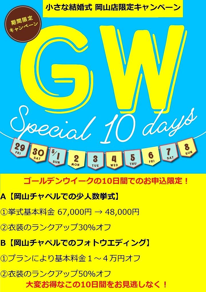 岡山店では「GW10日間の限定相談会」を開設いたします。