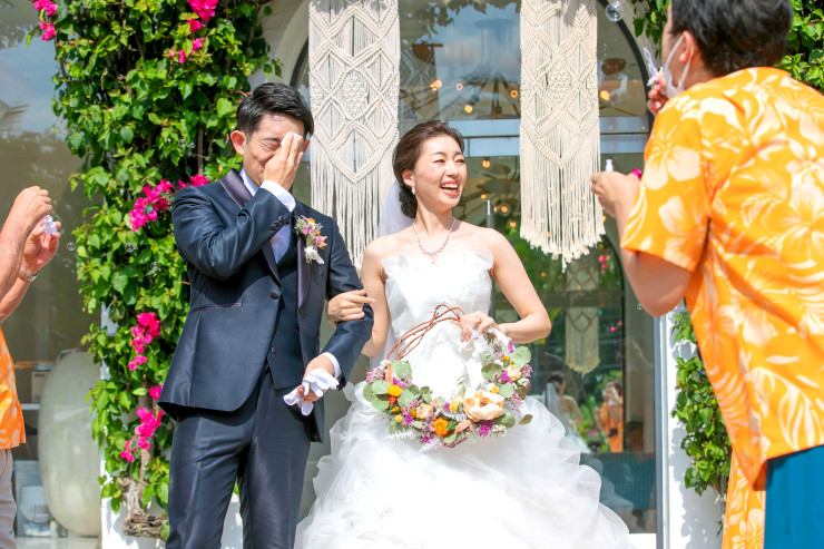 退場時はゲスト様によるシャボン玉の祝福で♪