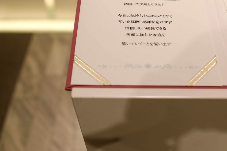 指輪の交換や誓いのキス、立会人によるご署名などを終えると