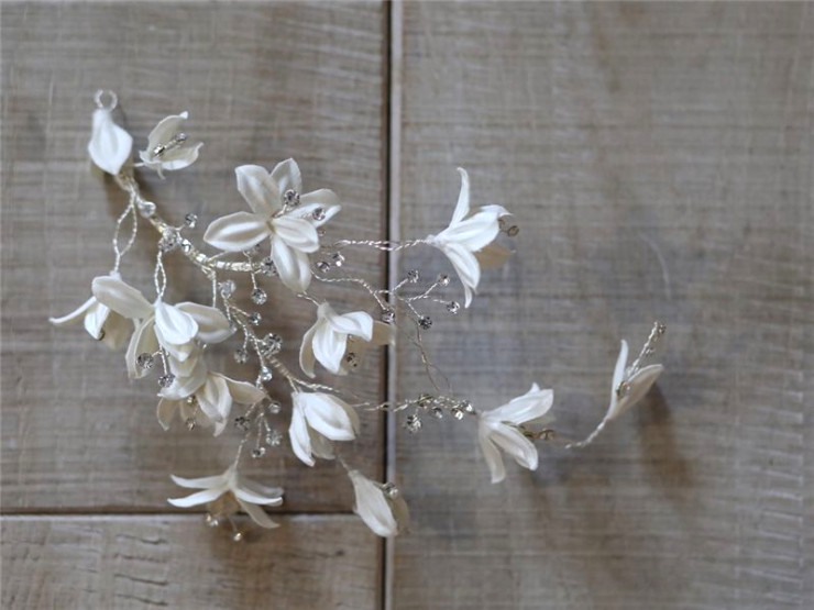 ホワイトのお花とキラキラのビジューが施された洗練されたデザインのヘアーアクセサリーとなっております。