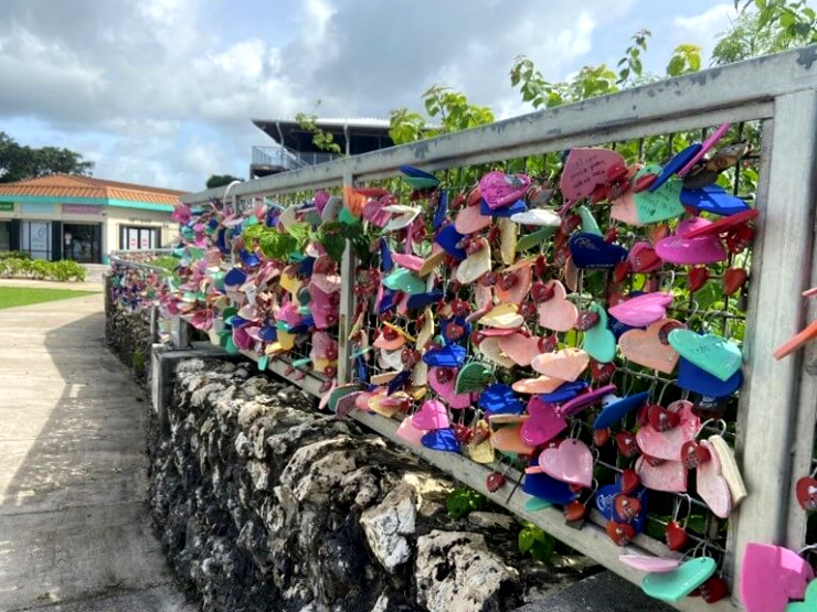ハートの南京錠やハート型のプレートに名前や メッセージを書き