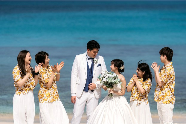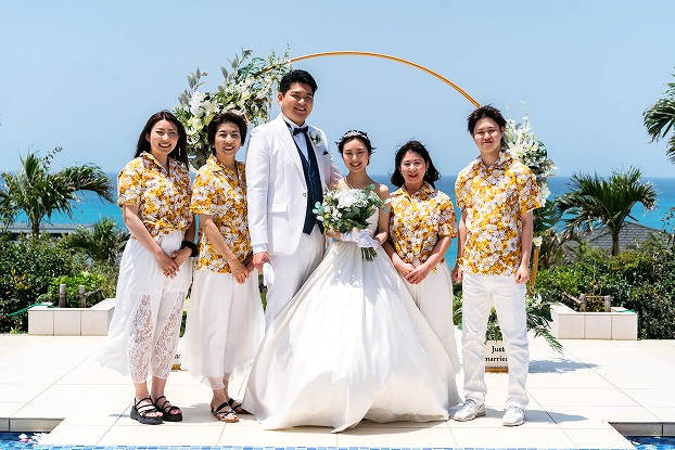 この日、お二人は家族一同とゲストとともに、愛にあふれた時間を過ごしました。笑顔あり、感動ありの結婚式。これこそが、小さな結婚式沖縄イル・ド・レ店での特別な一日。