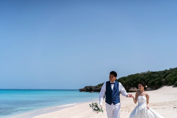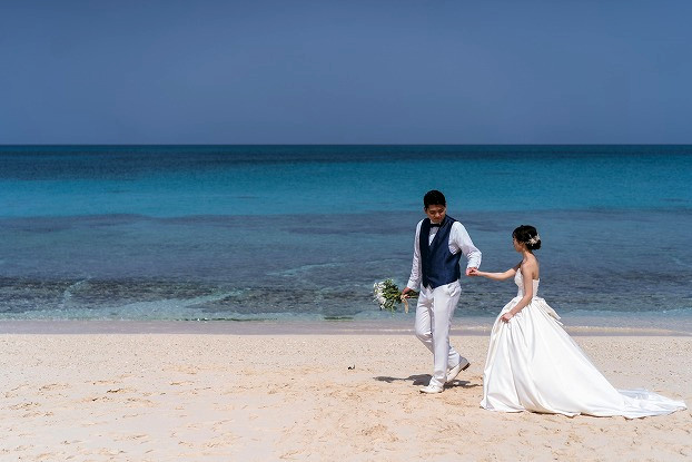 当日ご宿泊頂いているホテルにてお支度を整えた後、まずはビーチに移動し撮影を行って参ります。