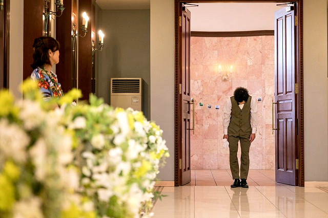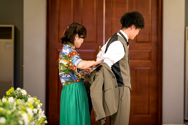 新郎様のお母様から 優しくジャケットがかけられます