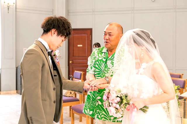 お父様から新郎様へのバトンタッチです。