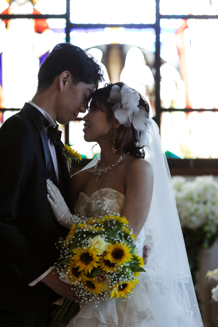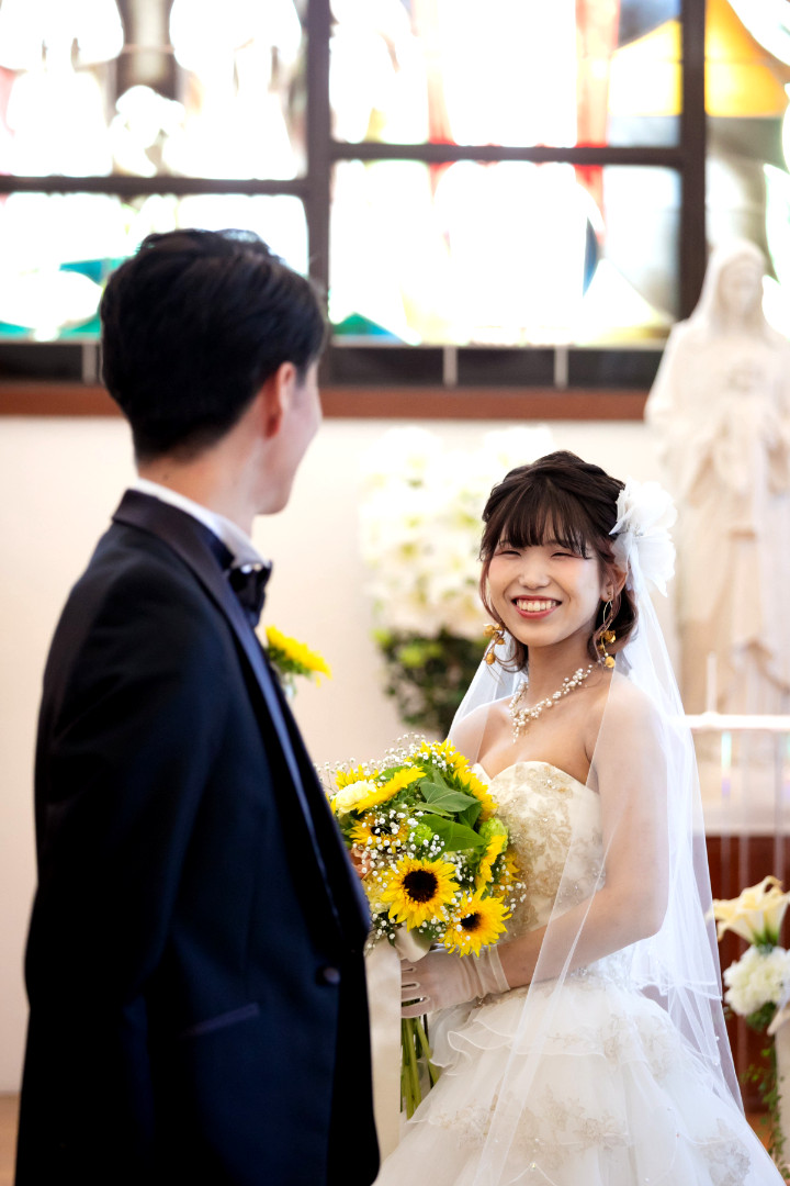 ひまわりのブーケより眩しい新婦さんの笑顔!