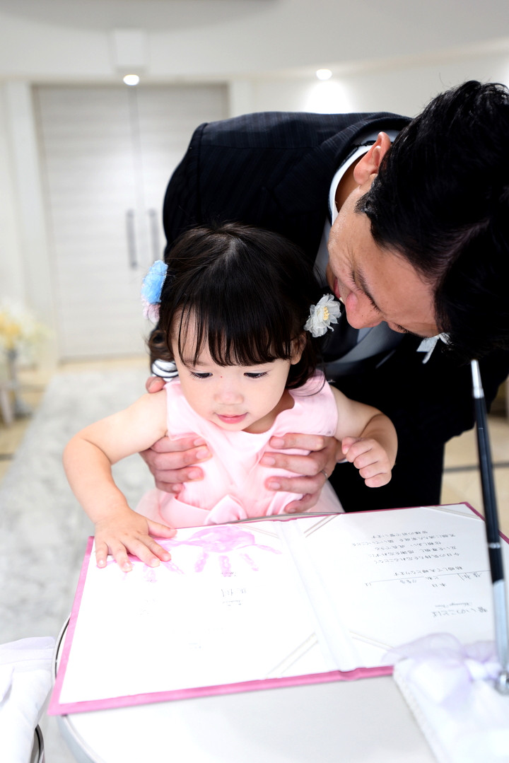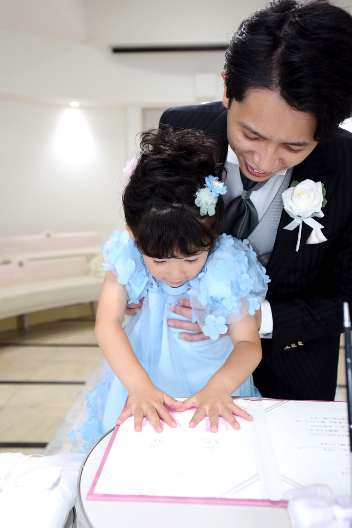 おふたりの結婚の承認は大切なお子様に手形スタンプで可愛く^^
