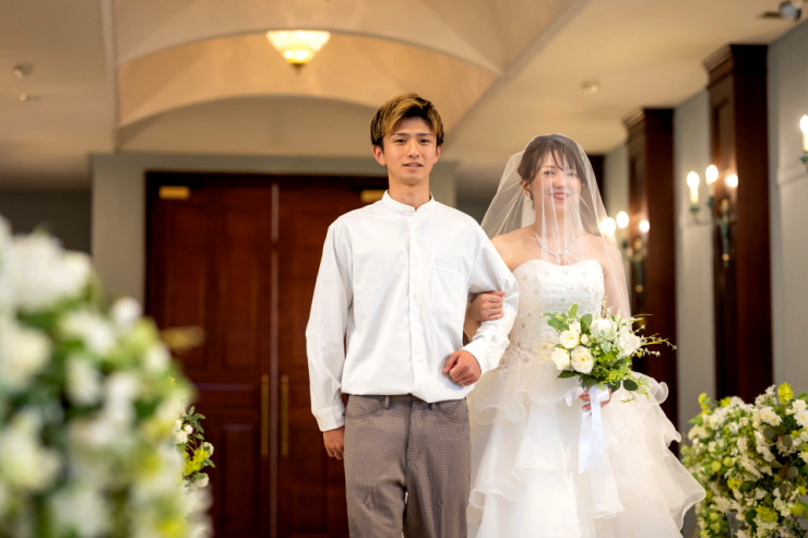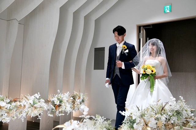 新郎新婦様ふたりでご入場することも出来ますし、親御様のエスコートで入場も可能です♪