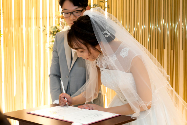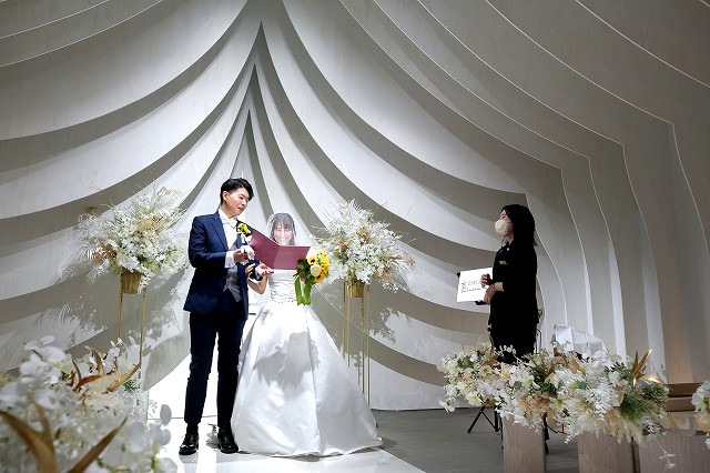 ゲストの皆さまが証人となってお2人の結婚をお認めいただきます。