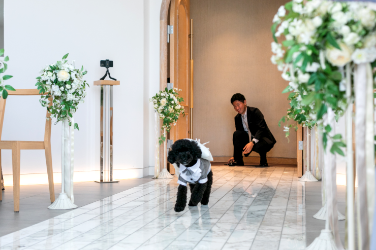 新郎新婦お二人に向かって一生懸命に走って指輪を届けるわんちゃん達がとても可愛いです💛