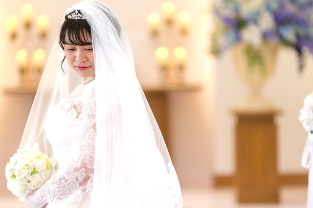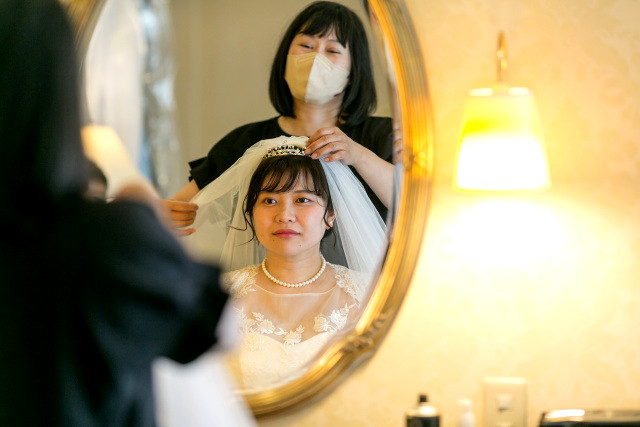 ベールをつけると一気に花嫁様らしい雰囲気高まります!
