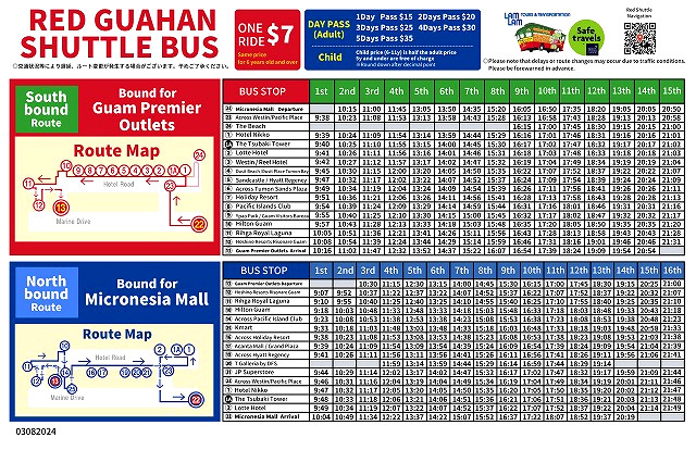 グアムではおなじみの赤いシャトルバスも運行しています♪