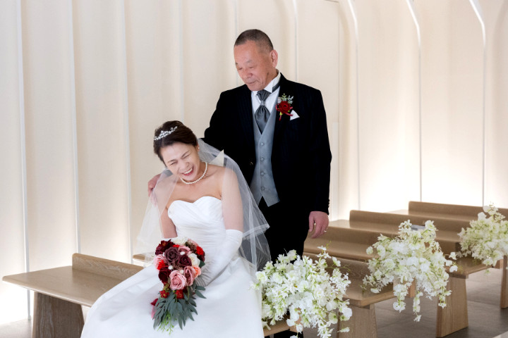 グローブセレモニーは剣を譲り受けるという意味を込めてお父様から行っていただく方が多いです。
