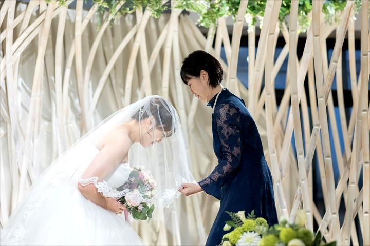 ご新婦様もお母さまから、ベールダウンを行っていただきました