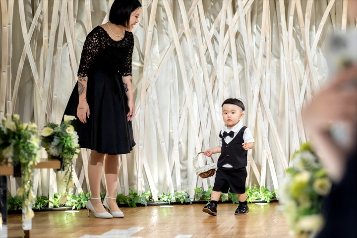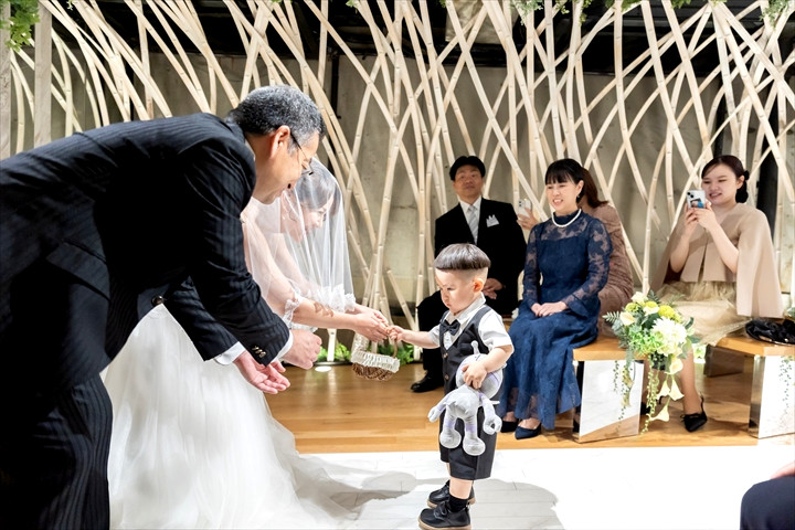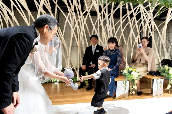 可愛らしいお子様にお2人の指輪をお持ちいただき