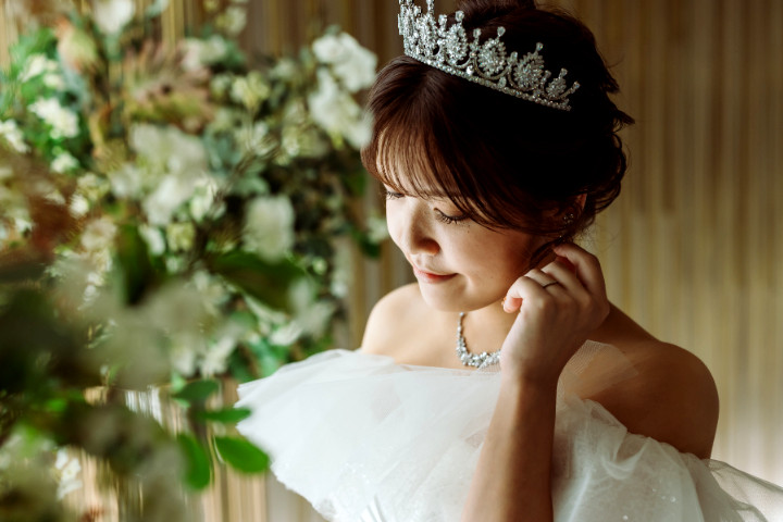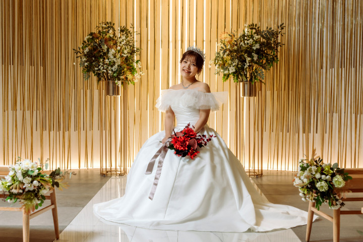 柔らかなシャンパンカラーは、肌なじみがよく上品な大人花嫁様にぴったり✨