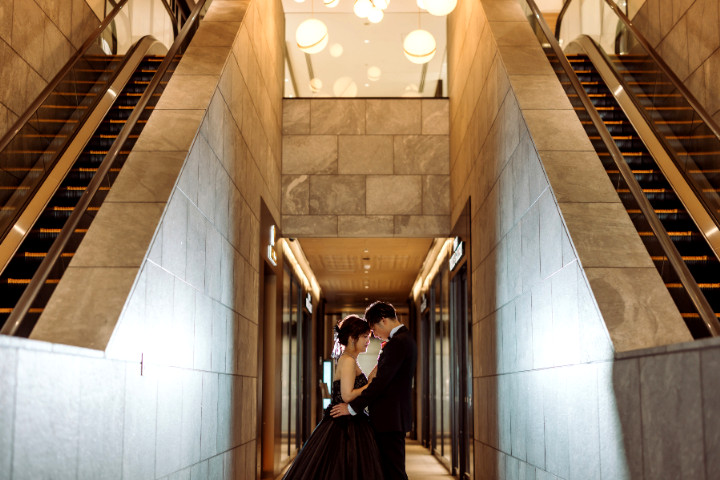 撮影場所を移動するさいに、オーバーカラードレスを着ていただきました♪