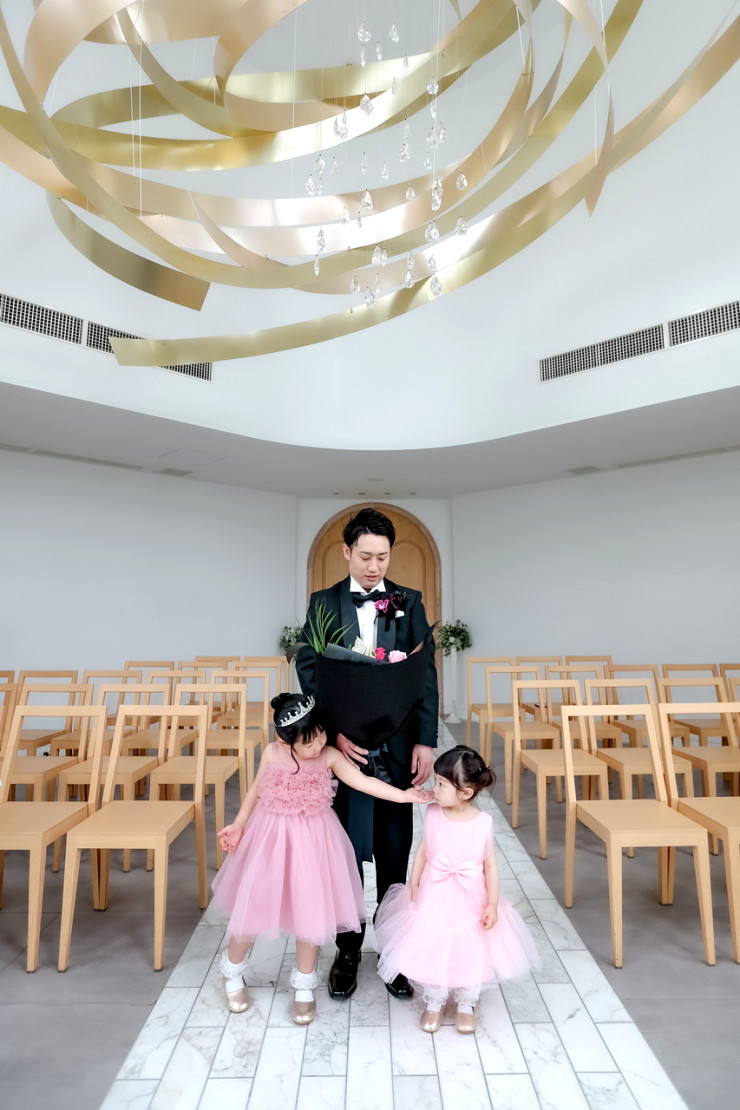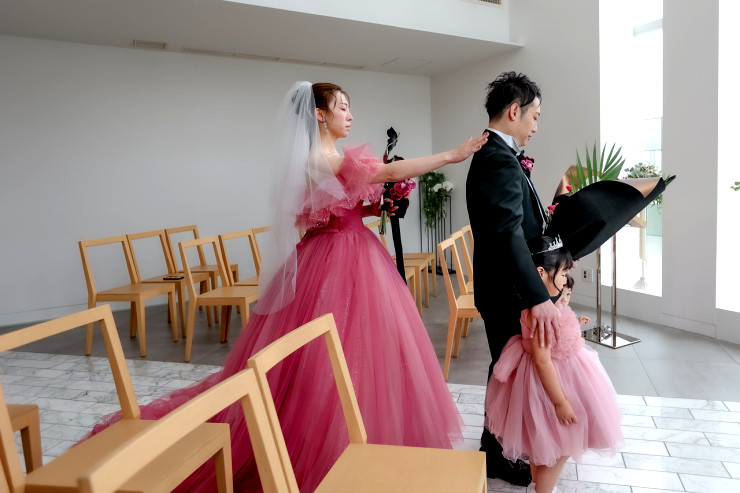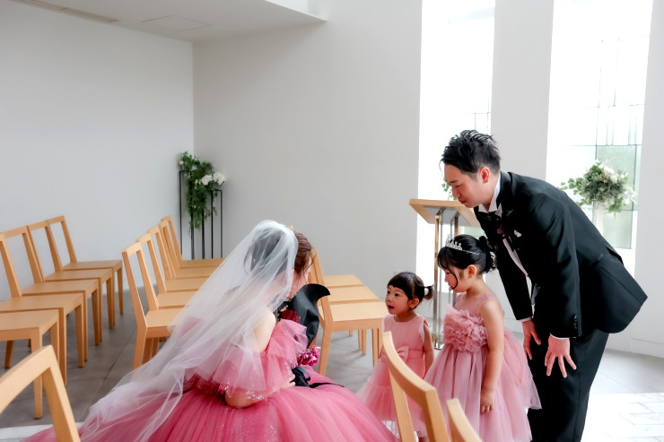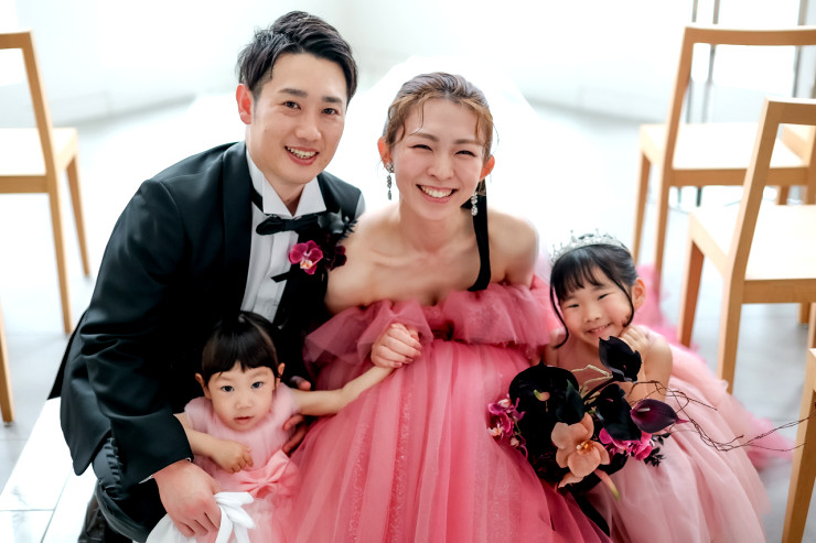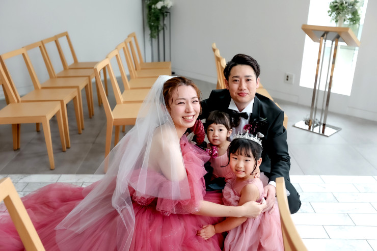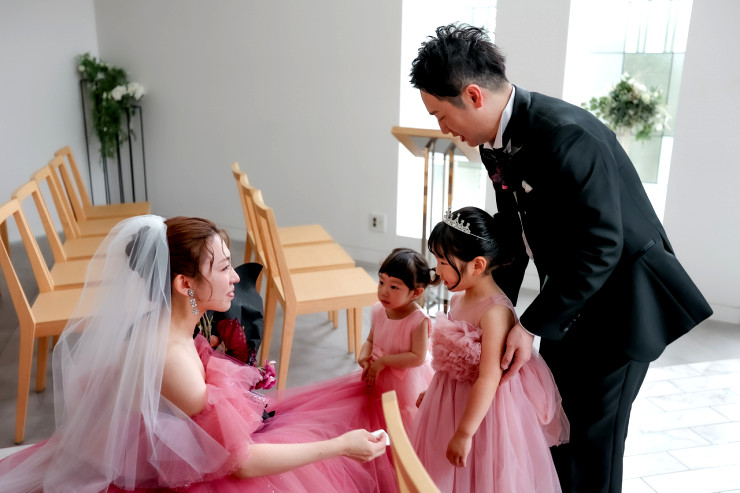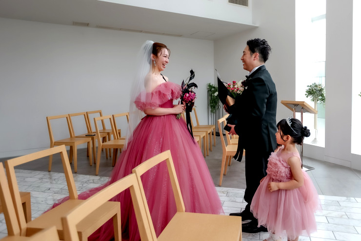 可愛らしい新婦様と同じ色のドレスを着たお子様も「ママいつもありがとう」とあたたかいファーストミートのお時間となりました。