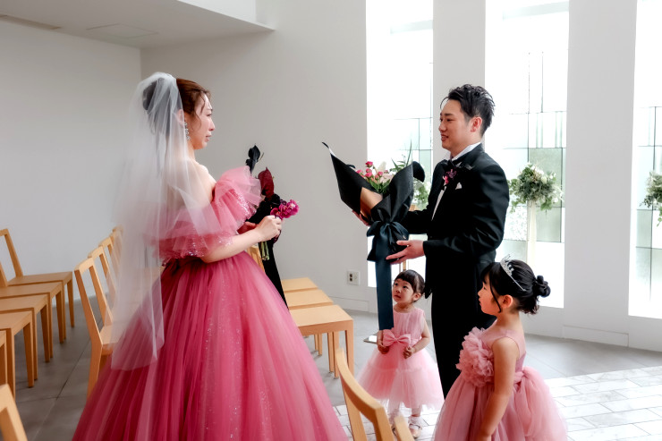 なんと新婦様!今回はピンクドレスにて挙式を行ったのです💗
